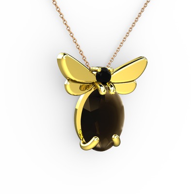 Dumanlı kuvars ve siyah zirkon 14 ayar altın kolye (40 cm gümüş rolo zincir)