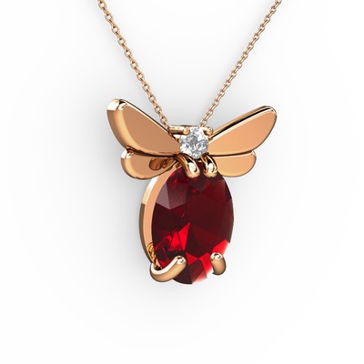 Garnet ve pırlanta 925 ayar rose altın kaplama gümüş kolye (0.24 karat, 40 cm rose altın rolo zincir)