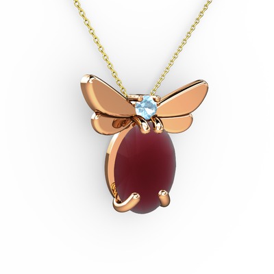 Kök yakut ve akuamarin 8 ayar rose altın kolye (40 cm altın rolo zincir)