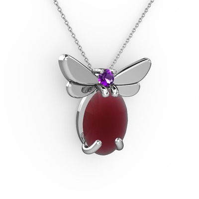 Kök yakut ve ametist 925 ayar gümüş kolye (40 cm beyaz altın rolo zincir)
