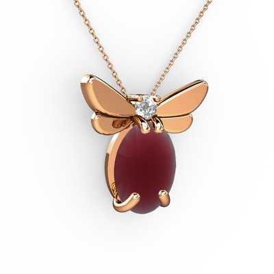 Kök yakut ve beyaz zirkon 14 ayar rose altın kolye (40 cm rose altın rolo zincir)