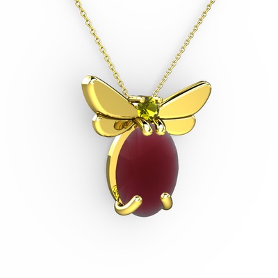 Kök yakut ve peridot 925 ayar altın kaplama gümüş kolye (40 cm altın rolo zincir)