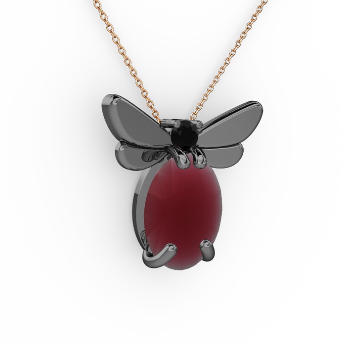 Kök yakut ve siyah zirkon 925 ayar siyah rodyum kaplama gümüş kolye (40 cm rose altın rolo zincir)