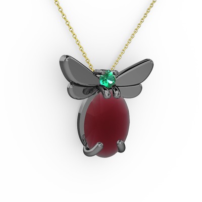 Kök yakut ve yeşil kuvars 925 ayar siyah rodyum kaplama gümüş kolye (40 cm altın rolo zincir)