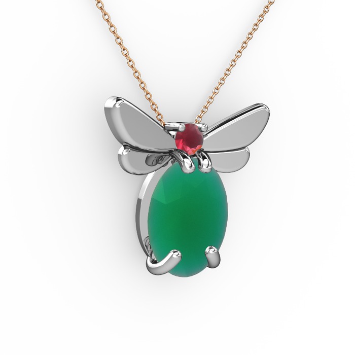 Kök zümrüt ve kök yakut 18 ayar beyaz altın kolye (40 cm rose altın rolo zincir)