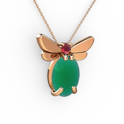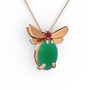 Kök zümrüt ve kök yakut 925 ayar rose altın kaplama gümüş kolye (40 cm rose altın rolo zincir)