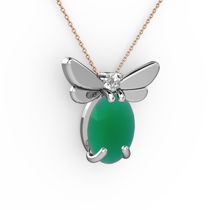 Kök zümrüt ve pırlanta 18 ayar beyaz altın kolye (0.24 karat, 40 cm rose altın rolo zincir)