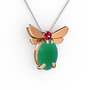 Kök zümrüt ve rodolit garnet 18 ayar rose altın kolye (40 cm beyaz altın rolo zincir)