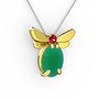 Kök zümrüt ve rodolit garnet 8 ayar altın kolye (40 cm beyaz altın rolo zincir)