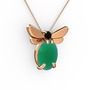 Kök zümrüt ve siyah zirkon 18 ayar rose altın kolye (40 cm rose altın rolo zincir)