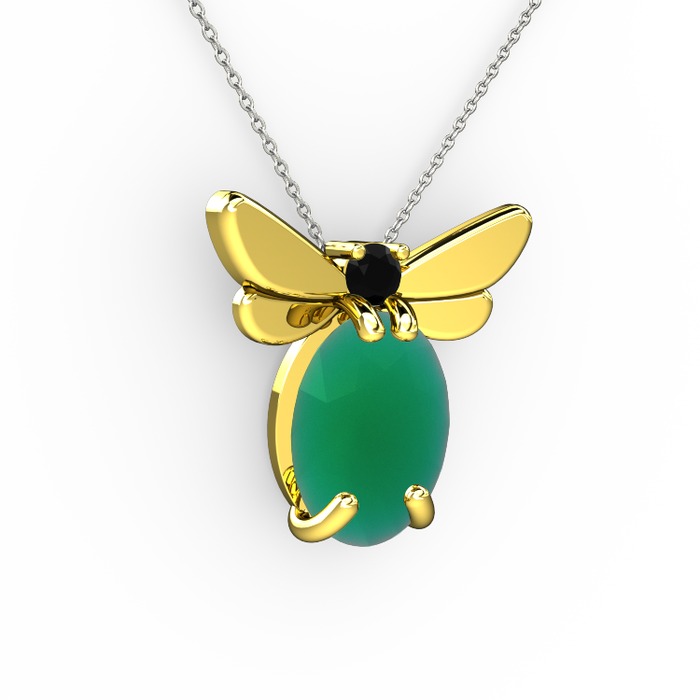 Kök zümrüt ve siyah zirkon 8 ayar altın kolye (40 cm gümüş rolo zincir)