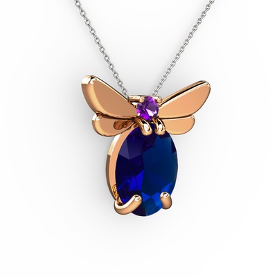 Lab safir ve ametist 8 ayar rose altın kolye (40 cm beyaz altın rolo zincir)