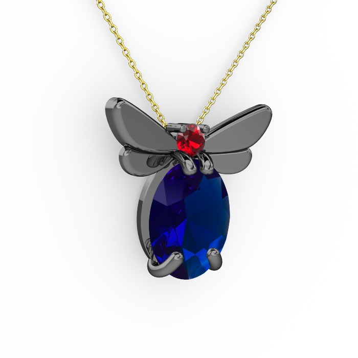 Lab safir ve garnet 925 ayar siyah rodyum kaplama gümüş kolye (40 cm altın rolo zincir)