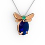 Lab safir ve kök zümrüt 925 ayar rose altın kaplama gümüş kolye (40 cm beyaz altın rolo zincir)