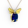 Lab safir ve pırlanta 8 ayar altın kolye (0.24 karat, 40 cm rose altın rolo zincir)