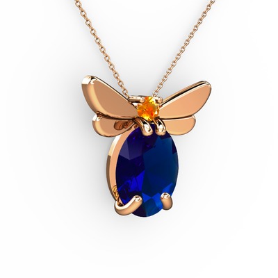 Lab safir ve sitrin 925 ayar rose altın kaplama gümüş kolye (40 cm rose altın rolo zincir)
