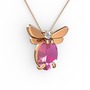 Pembe kuvars ve beyaz zirkon 8 ayar rose altın kolye (40 cm rose altın rolo zincir)