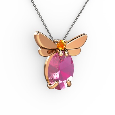Pembe kuvars ve sitrin 8 ayar rose altın kolye (40 cm gümüş rolo zincir)