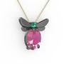 Pembe kuvars ve yeşil kuvars 925 ayar siyah rodyum kaplama gümüş kolye (40 cm altın rolo zincir)
