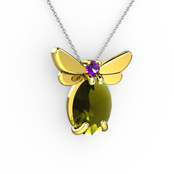 Peridot ve ametist 925 ayar altın kaplama gümüş kolye (40 cm beyaz altın rolo zincir)