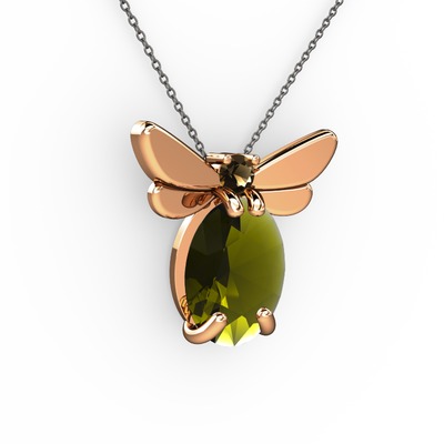 Peridot ve dumanlı kuvars 8 ayar rose altın kolye (40 cm gümüş rolo zincir)