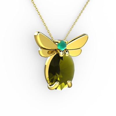 Peridot ve kök zümrüt 925 ayar altın kaplama gümüş kolye (40 cm altın rolo zincir)