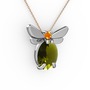 Peridot ve sitrin 14 ayar beyaz altın kolye (40 cm rose altın rolo zincir)