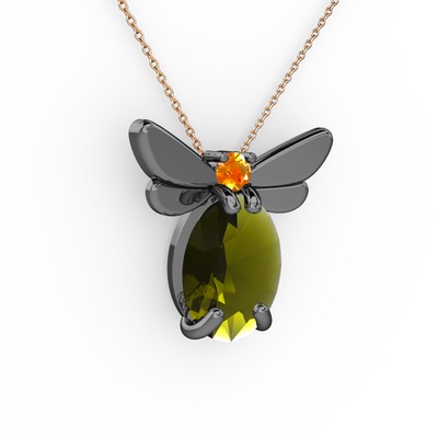 Peridot ve sitrin 925 ayar siyah rodyum kaplama gümüş kolye (40 cm rose altın rolo zincir)