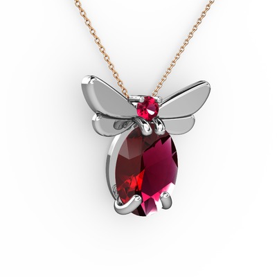 Rodolit garnet 18 ayar beyaz altın kolye (40 cm rose altın rolo zincir)