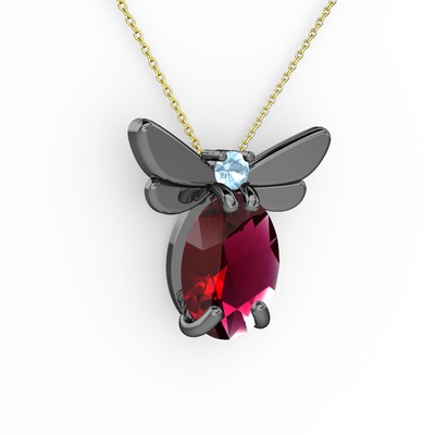 Rodolit garnet ve akuamarin 925 ayar siyah rodyum kaplama gümüş kolye (40 cm altın rolo zincir)