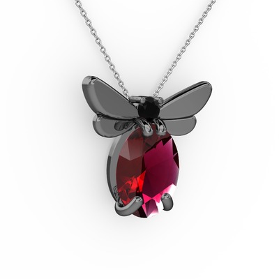 Rodolit garnet ve siyah zirkon 925 ayar siyah rodyum kaplama gümüş kolye (40 cm beyaz altın rolo zincir)