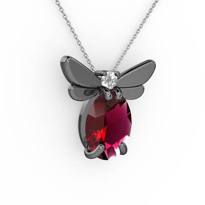 Rodolit garnet ve swarovski 925 ayar siyah rodyum kaplama gümüş kolye (40 cm beyaz altın rolo zincir)