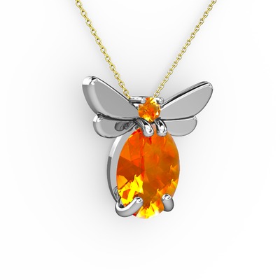Sitrin 18 ayar beyaz altın kolye (40 cm altın rolo zincir)