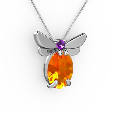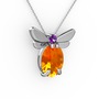 Sitrin ve ametist 925 ayar gümüş kolye (40 cm beyaz altın rolo zincir)