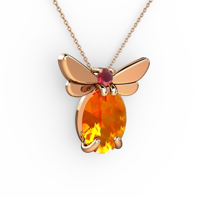 Sitrin ve kök yakut 18 ayar rose altın kolye (40 cm rose altın rolo zincir)