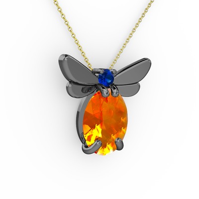 Sitrin ve lab safir 925 ayar siyah rodyum kaplama gümüş kolye (40 cm altın rolo zincir)