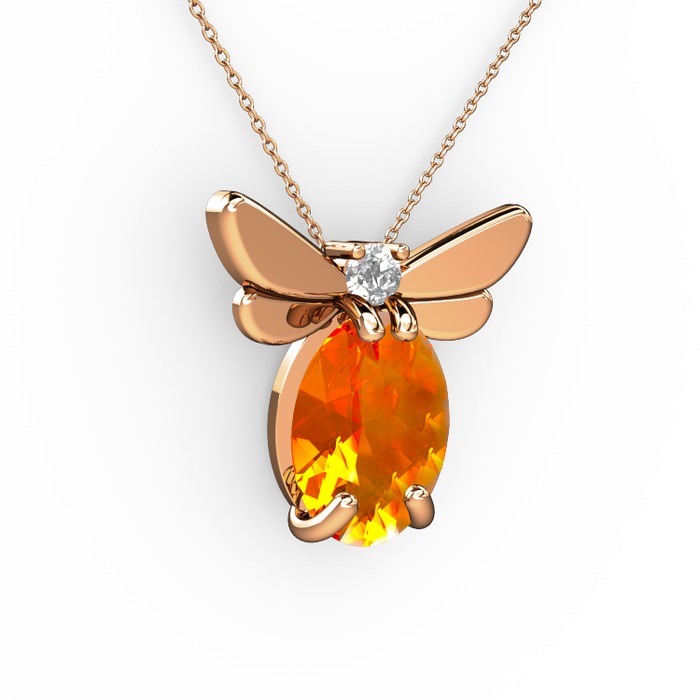 Sitrin ve pırlanta 8 ayar rose altın kolye (0.24 karat, 40 cm rose altın rolo zincir)