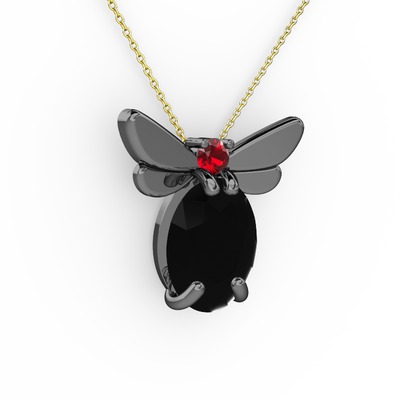 Siyah zirkon ve garnet 925 ayar siyah rodyum kaplama gümüş kolye (40 cm altın rolo zincir)