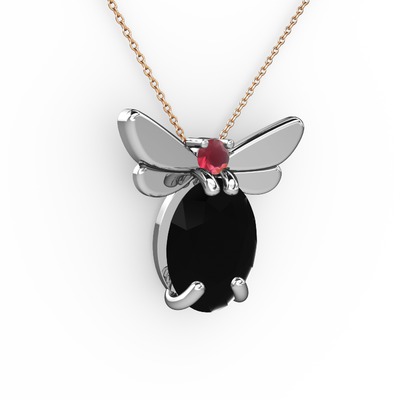 Siyah zirkon ve kök yakut 18 ayar beyaz altın kolye (40 cm rose altın rolo zincir)
