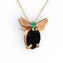 Siyah zirkon ve kök zümrüt 14 ayar rose altın kolye (40 cm altın rolo zincir)