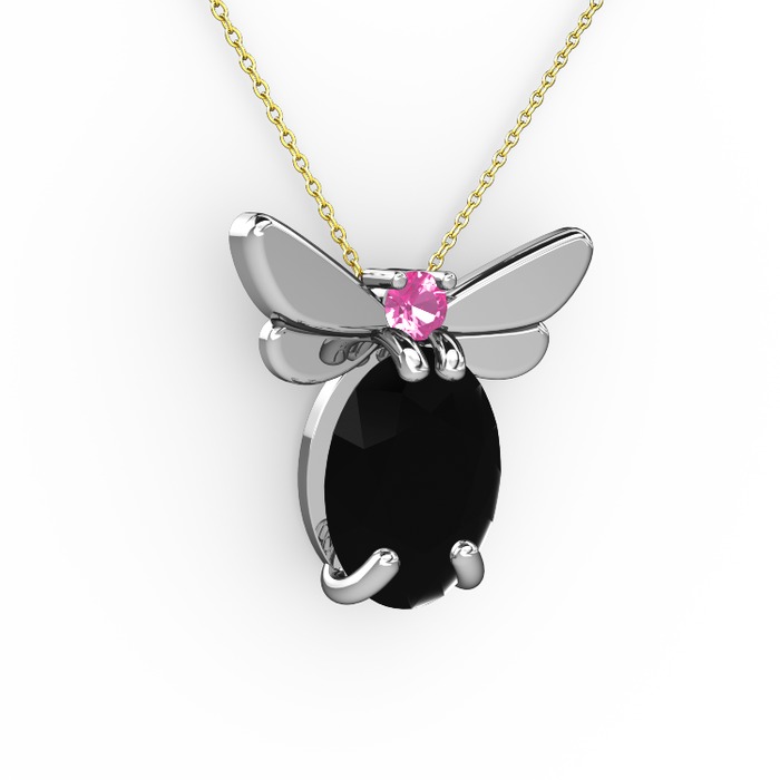 Siyah zirkon ve pembe kuvars 925 ayar gümüş kolye (40 cm gümüş rolo zincir)