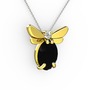 Siyah zirkon ve pırlanta 18 ayar altın kolye (0.24 karat, 40 cm gümüş rolo zincir)