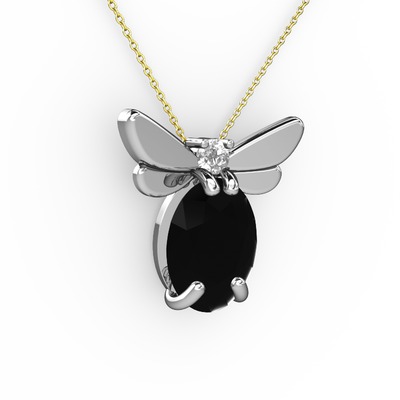 Siyah zirkon ve pırlanta 925 ayar gümüş kolye (0.24 karat, 40 cm altın rolo zincir)