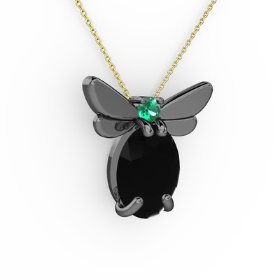 Siyah zirkon ve yeşil kuvars 925 ayar siyah rodyum kaplama gümüş kolye (40 cm altın rolo zincir)