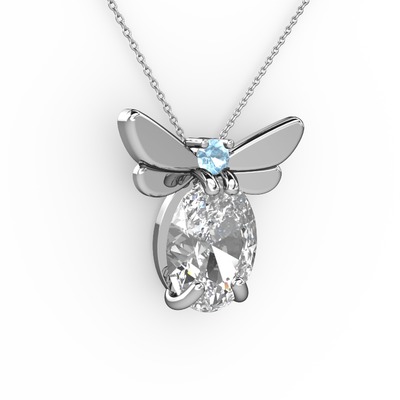 Swarovski ve akuamarin 18 ayar beyaz altın kolye (40 cm beyaz altın rolo zincir)