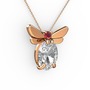 Swarovski ve kök yakut 8 ayar rose altın kolye (40 cm rose altın rolo zincir)