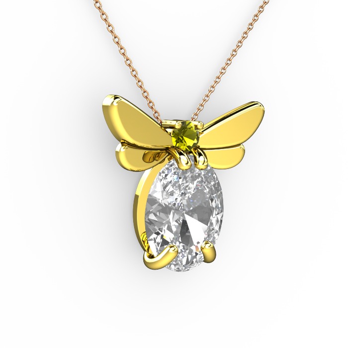 Swarovski ve peridot 14 ayar altın kolye (40 cm rose altın rolo zincir)