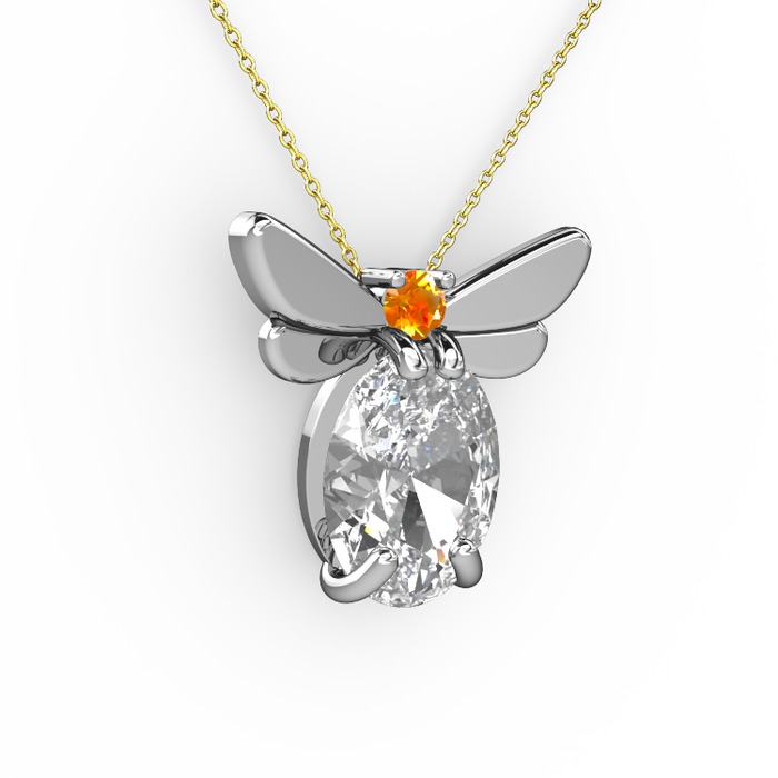 Swarovski ve sitrin 18 ayar beyaz altın kolye (40 cm gümüş rolo zincir)