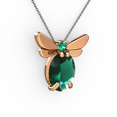 Yeşil kuvars 8 ayar rose altın kolye (40 cm gümüş rolo zincir)