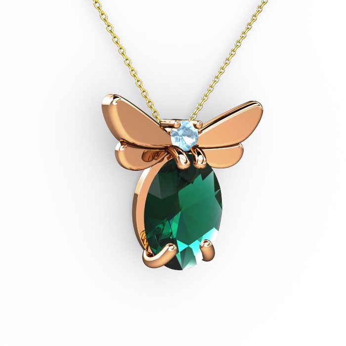 Yeşil kuvars ve akuamarin 14 ayar rose altın kolye (40 cm gümüş rolo zincir)